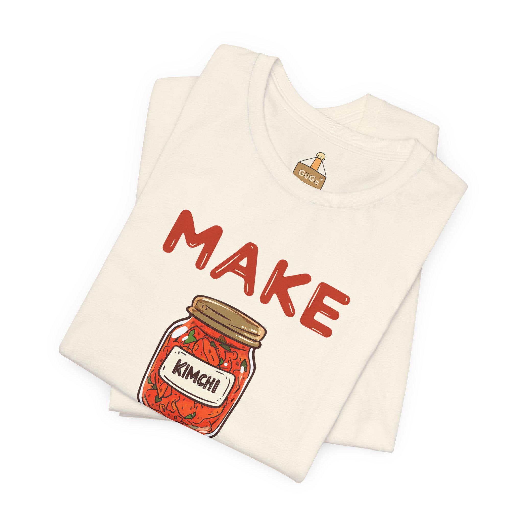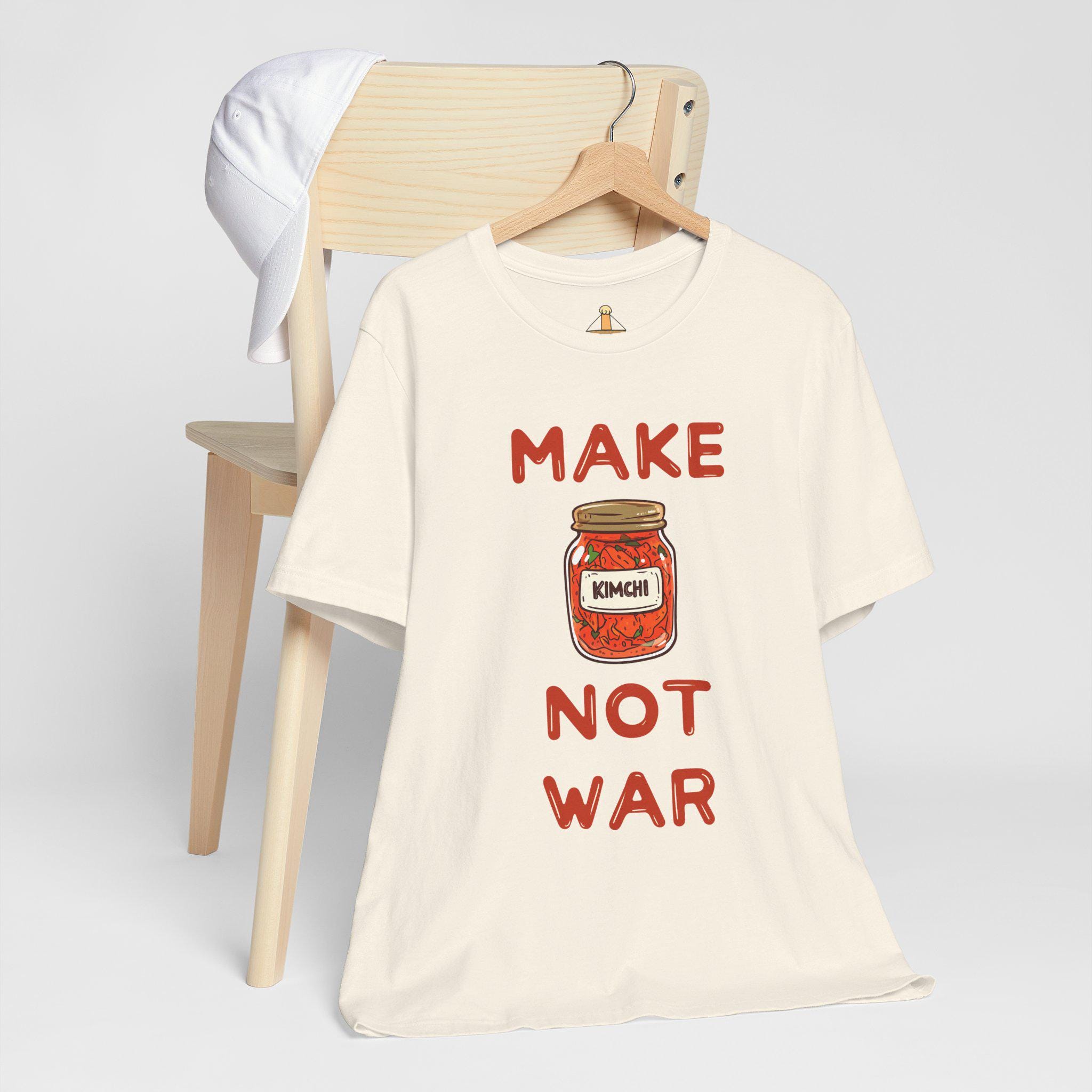 This quirky and funny T-Shirt features a design, that says 'Make Kimchi Not War', is perfect for foodies and fans of Korean cuisine, adding a playful and vibrant touch to their wardrobe. Ideal for casual outings, food festivals, Korean BBQ gatherings, and as a unique gift for food enthusiasts.